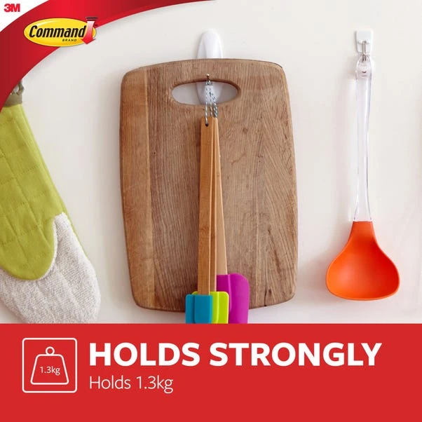 For effective damage-free hanging indoors, use Command™ Medium Wire Hooks, they hold strongly to a variety of surfaces including solid, hollow, painted walls as well as other materials including wood, tile, metal, and glass. They’re easy to apply and remove, leaving no holes, marks or sticky residue and suitable for any room in the house. Rehanging them is as easy as applying a Command™ Refill Strip, so you can effortlessly take down or move and reuse them again and again.
