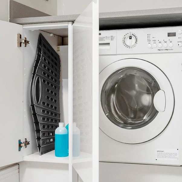 The ultimate space saving design, this foldable laundry basket by Addis folds flat when not in use for easy storage. Perfect to be stored between your washing machine or in a cupboard, this laundry basket has a large 38 litre capacity with convenient carry handles.