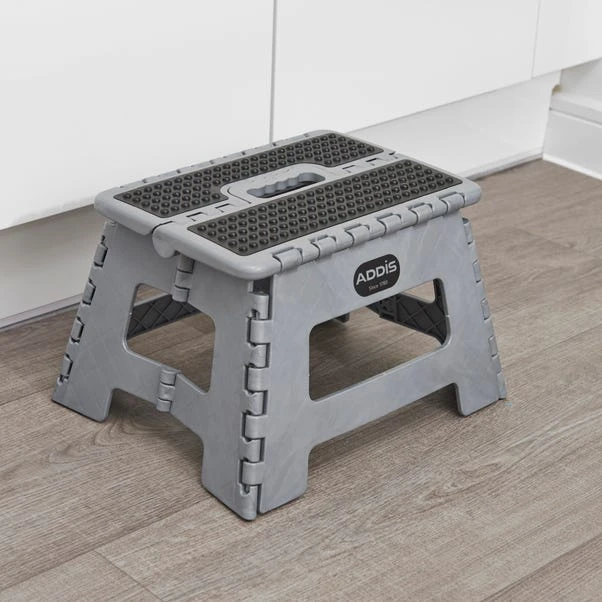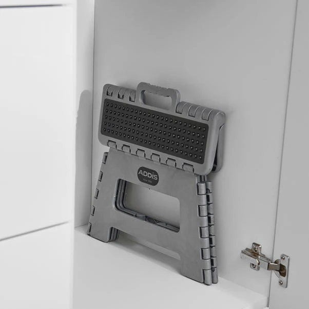 This clever and compact folding step stool comes complete with a practical carry handle and a safe, non slip surface for added peace of mind. Perfect for when you need a little lift to reach those hard to reach places, the non slip feet will ensure the step stool doesn’t slip. Suitable to fold flat it is ideal for storage or on the go use.