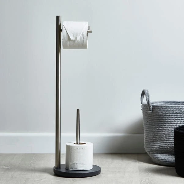 Crafted with a durable dark grey base plate, this toilet butler features a metal structure to hold your toilet roll as well as an area to keep spare rolls.