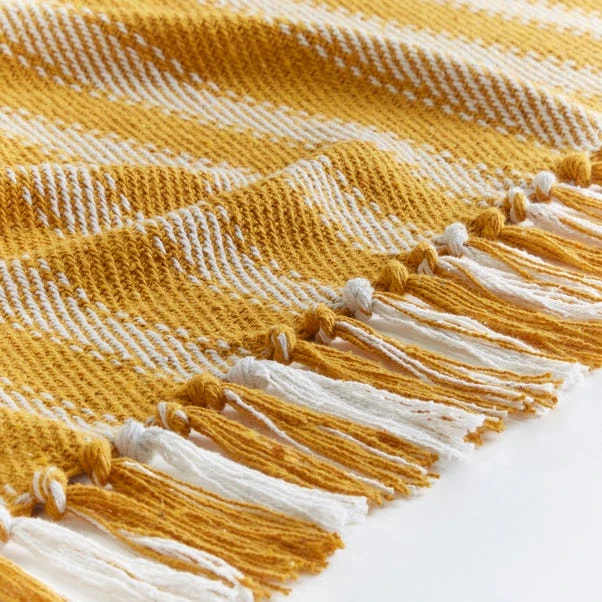 This stunning hand-woven throw has a stylish design, tasselled edges and modern colourway, complementing an array of home decors beautifully. Made from recycled polyester and cotton, this throw is also available in other colours.