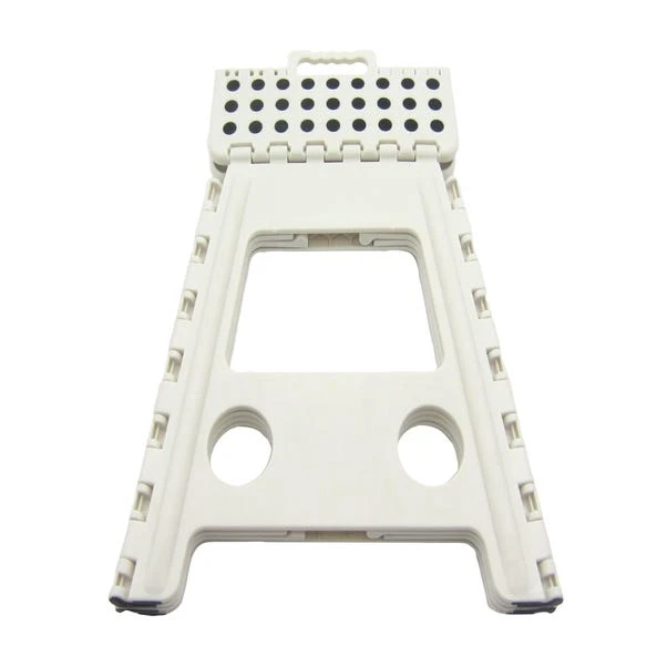 This easily stored foldup step stool is finished in white and made from durable plastic.