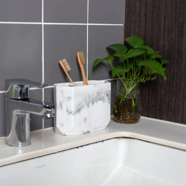 Boasting elegance and practicality, this marble toothbrush holder keeps your bathroom neat and tidy. Perfect for holding toothbrushes, hairbrushes or stationery, this toothbrush holder is the perfect multi-functional item. This toothbrush holder is chic and easy to clean.