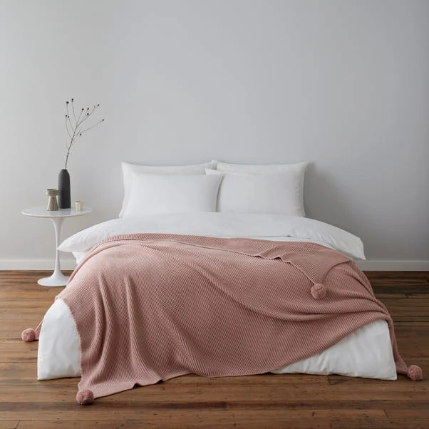 Dunelm Pom Pom Knit Blush Throw
