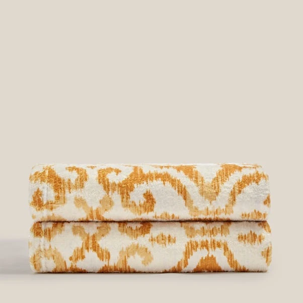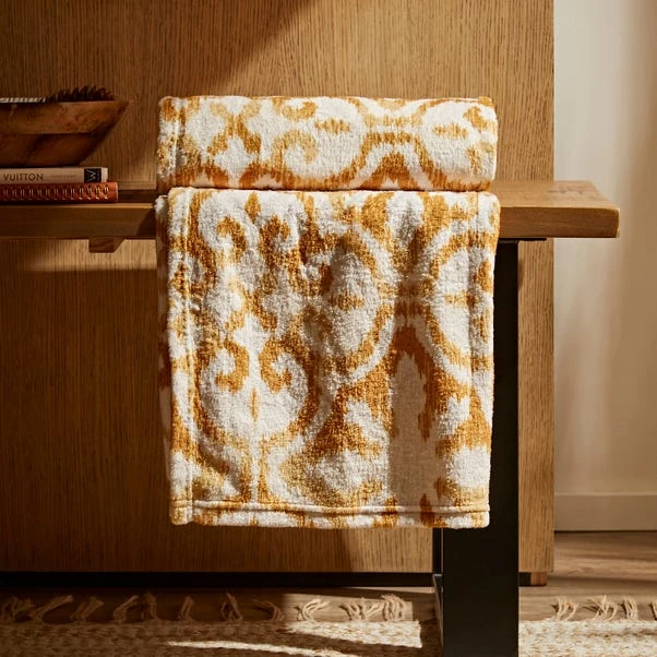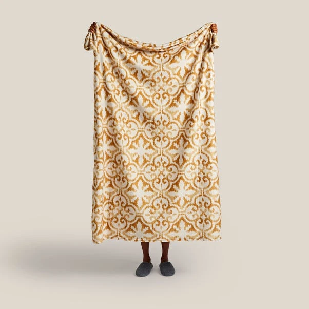 Dunelm Printed Fleece Sitara 130x160cm Throw Old Gold