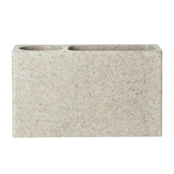Featuring two openings, this grey toothbrush holder is crafted from resin and designed with a stone effect finish.