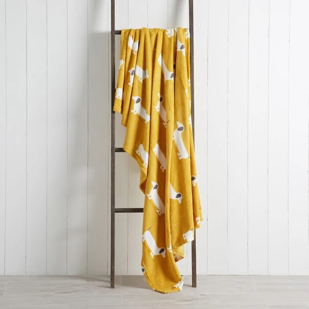 Featuring a fun sausage dog design on a vibrant yellow backing, this charming throw is ideal for adding a fun pop of colour to your home. This throw is fashioned from durable materials for added longevity and is crafted with a super soft shaggy texture for maximum comfort. Machine washable for easy care, this throw can be tumble dried to preserve the luxurious fleecy texture.
