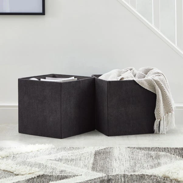 These two large size storage cubes are perfect for storing sundries, clothing and other essentials and can easily be folded away into flat-pack when not in use. Modern corduroy is a sophisticated way to enhance your ordinary storage cube. These cubes will bring style to your space while providing ample room for storage.