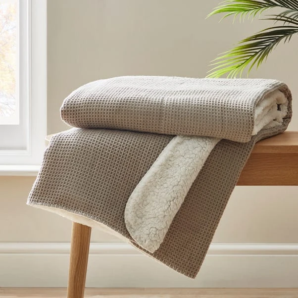 Made with a waffle sherpa material, this throw will add a soft and snuggly feel to any room of the house, whether its displayed on sofas, chairs or a bed. The modern piece has a fresh grey colourway that will complement an array of home decors beautifully.
