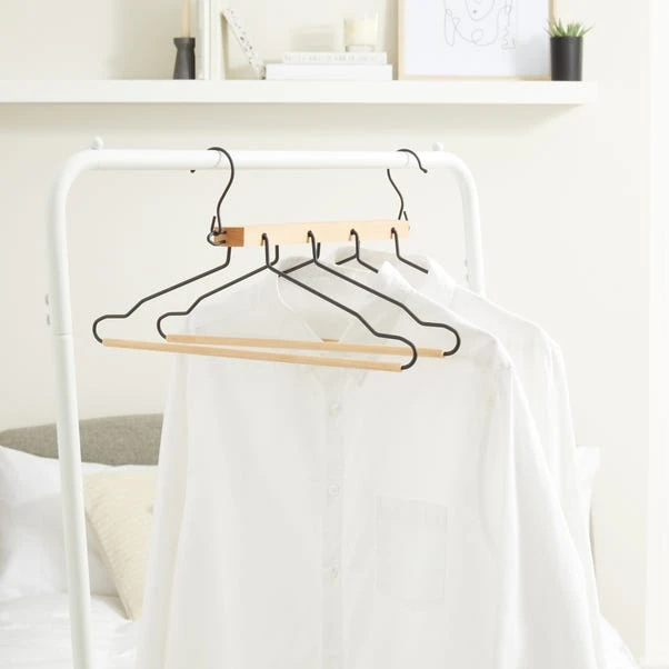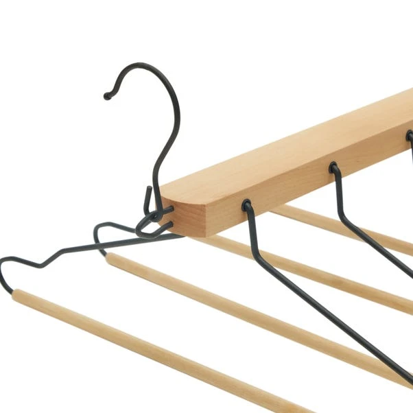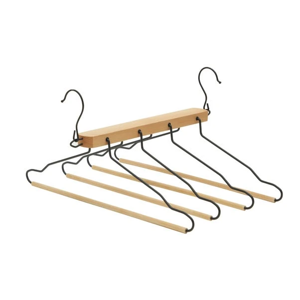 This multi shirt hanger is perfect for space saving in your wardrobe. This durable design is made from wood and metal in a fashionable colour tone. Ideal for storing all your work/uniform shirts together.