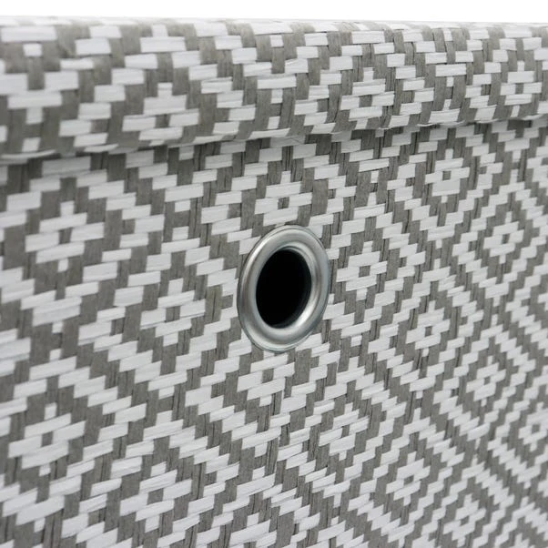 Upgrade your storage game with the Argyle foldable storage box from JVL – a stylish and functional addition to any room in your home. This square box features a trendy diamond pattern in a soft grey colour, designed to complement most contemporary interior styles and can be easily folded away when not in use, saving space in your home. The lid keeps your items enclosed and helps to clear clutter and organize your space with style. The paper construction of this storage box makes it a great option for storing items such as office supplies, stationary, toys and more and the metal handles add a touch of elegance.