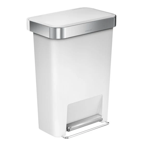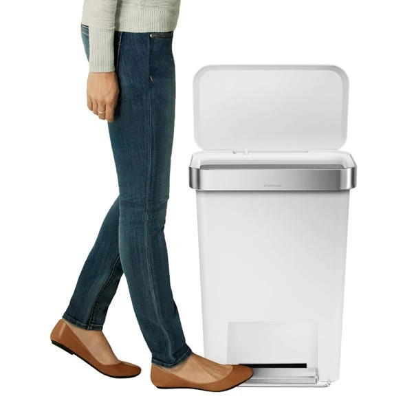 From the simplehuman range, this rectangular pedal bin features an innovative ‘liner pocket’ for fast liner change. This steel bin has a stainless accent cover which closes down over the liner keeping it hidden. Featuring a durable wide steel pedal band, the patented lid shox technology ensures a quite close. Use with simplehuman size code K liners 20 pack. The bin has a 5 year warranty.