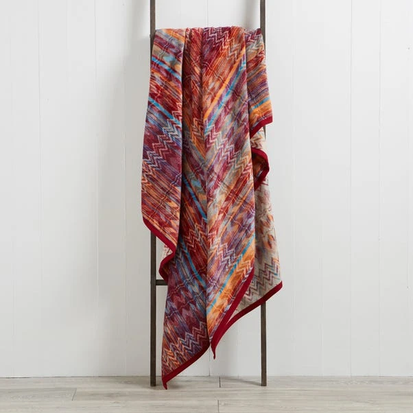 Featuring a colourful zig-zag pattern, this fusion throw is complete with a red border and is machine washable for easy care.