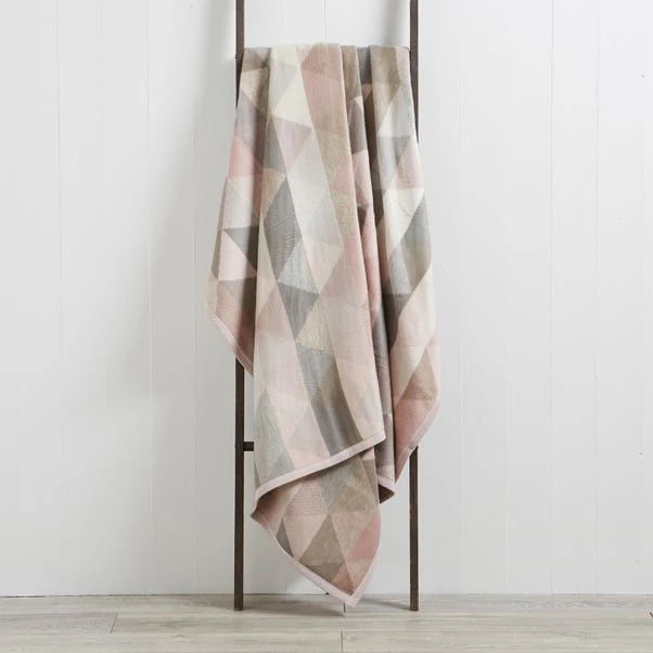 Made with a luxurious soft feel, this Thermosoft blanket is patterned with a geo shape design in muted pink colours and is complete with a velour binding on all four sides.