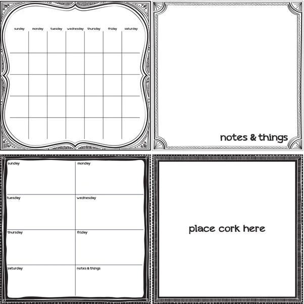 Get organised and look sharp with this chic black & white organisation kit. The timeless contrast of black and white lends a clean and stylish look to walls while also providing the perfect space to stay on top of a busy schedule. A dry-erase monthly calendar, weekly planner and message board are accompanied by a cork board to tack up memories, photos and more. The kit also includes 6 oversized pins to add your own photos, keepsakes and more to the wall. Each of the orgainser kit pieces are 13″ x 13″.